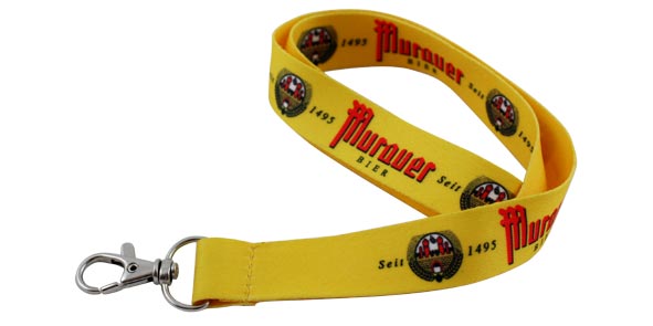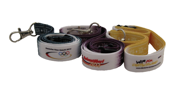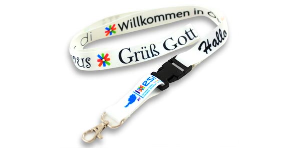 Die „Königsklasse“ unter den Schlüsselbändern sind Schlüsselbänder im Transferdruck. Mit dieser Technik, dem Thermotransferdruck, gibt es fast keine Grenzen, nahezu jedes Motiv ist umsetzbar. Logos und Schriftzüge mit Farbverläufen können auf Ihren Transferdruck Schlüsselbändern umgesetzt und randabfallend bedruckt werden. Ein weiterer Vorteil dieses Druckverfahrens ist die Möglichkeit der perfekten Umsetzung feiner Details, sogar Photos können auf Schlüsselbändern im Transferdruck dargestellt werden. Sie haben viele Farben mit denen Sie Ihre Schlüsselbänder bedrucken lassen wollen? Kein Problem, die Anzahl der Farben ist beim Transferdruck egal. Betrachten Sie einfach in der Referenzgalerie unsere verwirklichten Schlüsselbänder im Transferdruck. Sie werden erstaunt sein, was alles machbar ist.